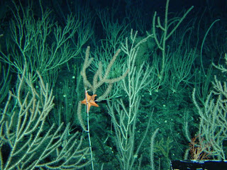 Whilst the scientists found no adverse effects on larval development or soft tissue production in the present study, they did observe a significant decrease in the amount of calcium carbonate that the organisms produced, resulting in smaller and thinner skeletons.I should note that I haven't seen or had a chance to read the BBC paper as yet.. but a discussion on this topic with my colleague Dr. Allison Gong of UCSC (and who provided some Pycnopodia pix) reminded me of a paper I had seen awhile back.